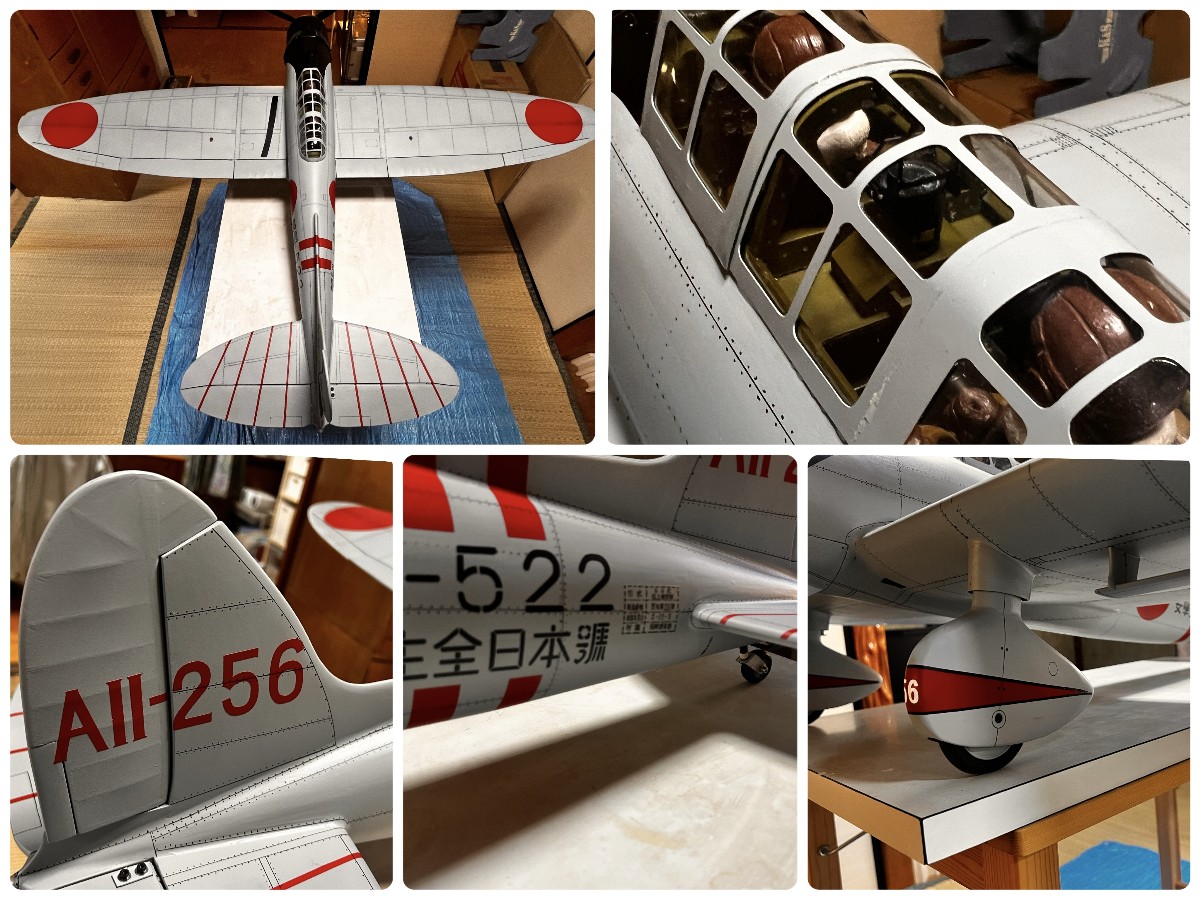 終盤、集中力も途切れ、かなり雑な作りになったけど、当初の狙いどおり拘った部分、実機どおりの羽布張りの表現やダンパー付きの脚など工夫しつつイメージどおりには出来ました。