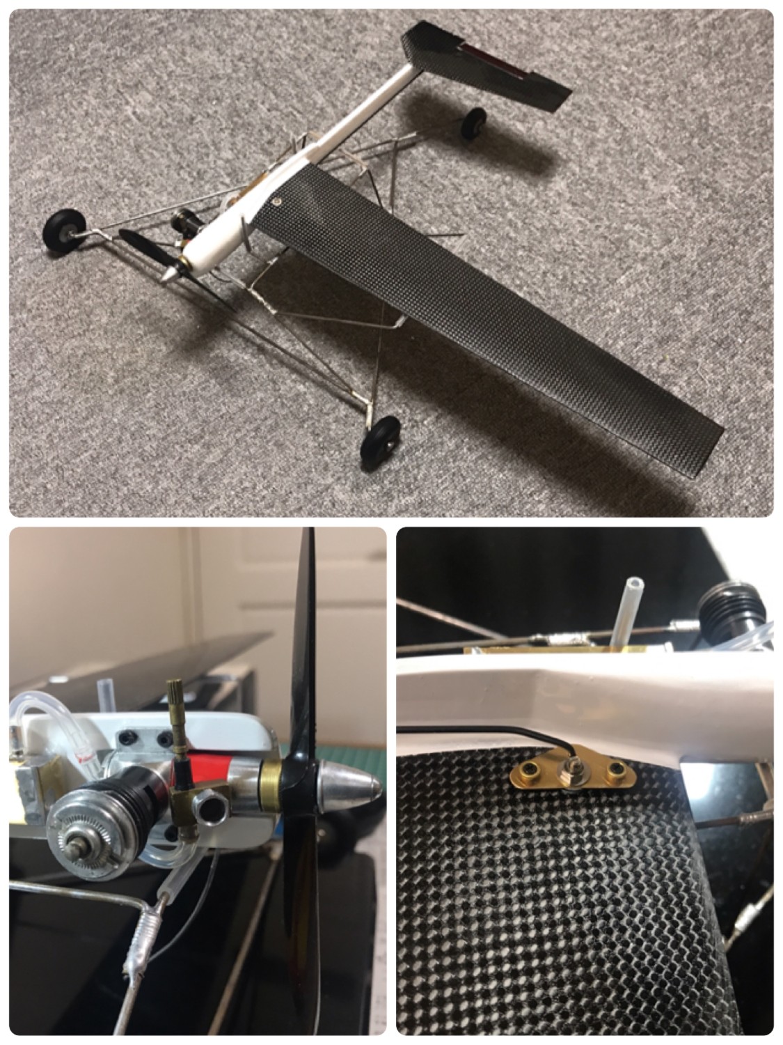 構造と寸法はUコン技術の「スラッグ」を参考に、テールモーメントだけ少し短くし、主尾翼はカーボンで作りました。COXエンジンチューンの定番?4.5mmに広げたベンチュリーとクランクケースプレッシャーも対応しました。