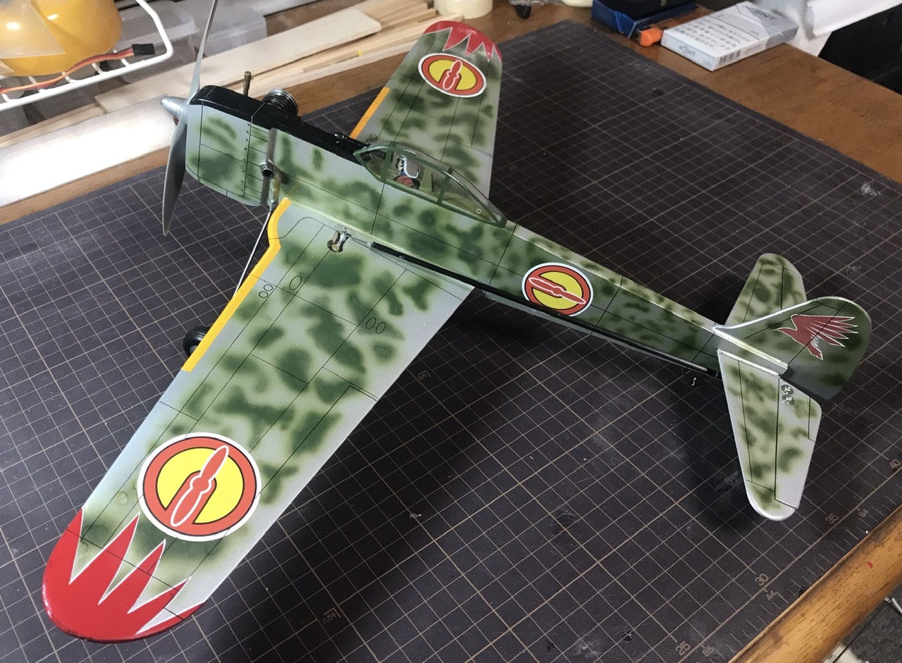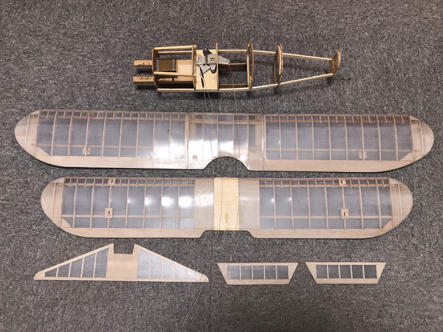 なるべくキットどおりに作りたいのですが、上反角や主翼の支柱など面倒な工作箇所があり苦労しました。複葉機は3機目(九三中練習・赤とんぼ2機)ですが、自作なら考えながら楽な工作をするのですが、このキットは図面と現物を何度も見比べ、十分に理解して製作する必要があります。