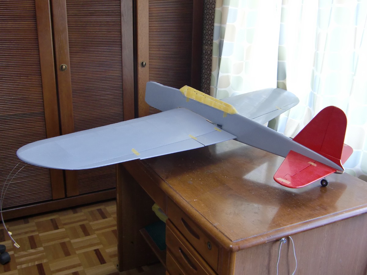 慣れたフィルム貼りですが、初めて作るラッキーボックス?というか途中から上半角の付く翼のフラップ作成に時間を費やしました。いつもどおり図面もない状態で、実機の精密図面を見ながら、頭で描いてパーツを切り出すという方法で、どうにか形は出来ました。