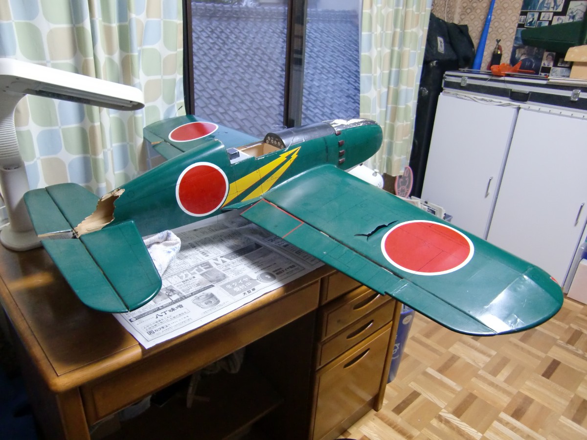 江原さんの自宅から引き揚げて?、あちこち様子を見ていましたが、見掛け以上に損傷があり、胴体も割れがあり、かなり痛んでいます。修復にはかなり気合がいりそうですが、先日、鹿児島のレストア零戦を見て刺激を受け、海から引き揚げた状態よりはいいだろう・・・と修復に着手。