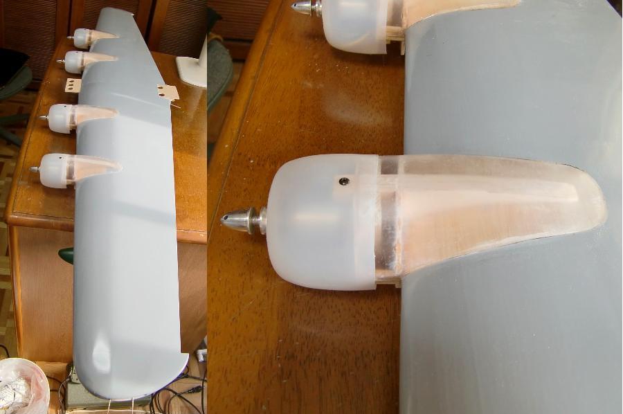 4基あるエンジンナセル(アンプの配置、ESCへのケーブルの接続などメンテナンスも必要)をどう処理しようか考え続けていましたが、カウル後半の部分は上下分割で、塩ビ板で作ることにしました。