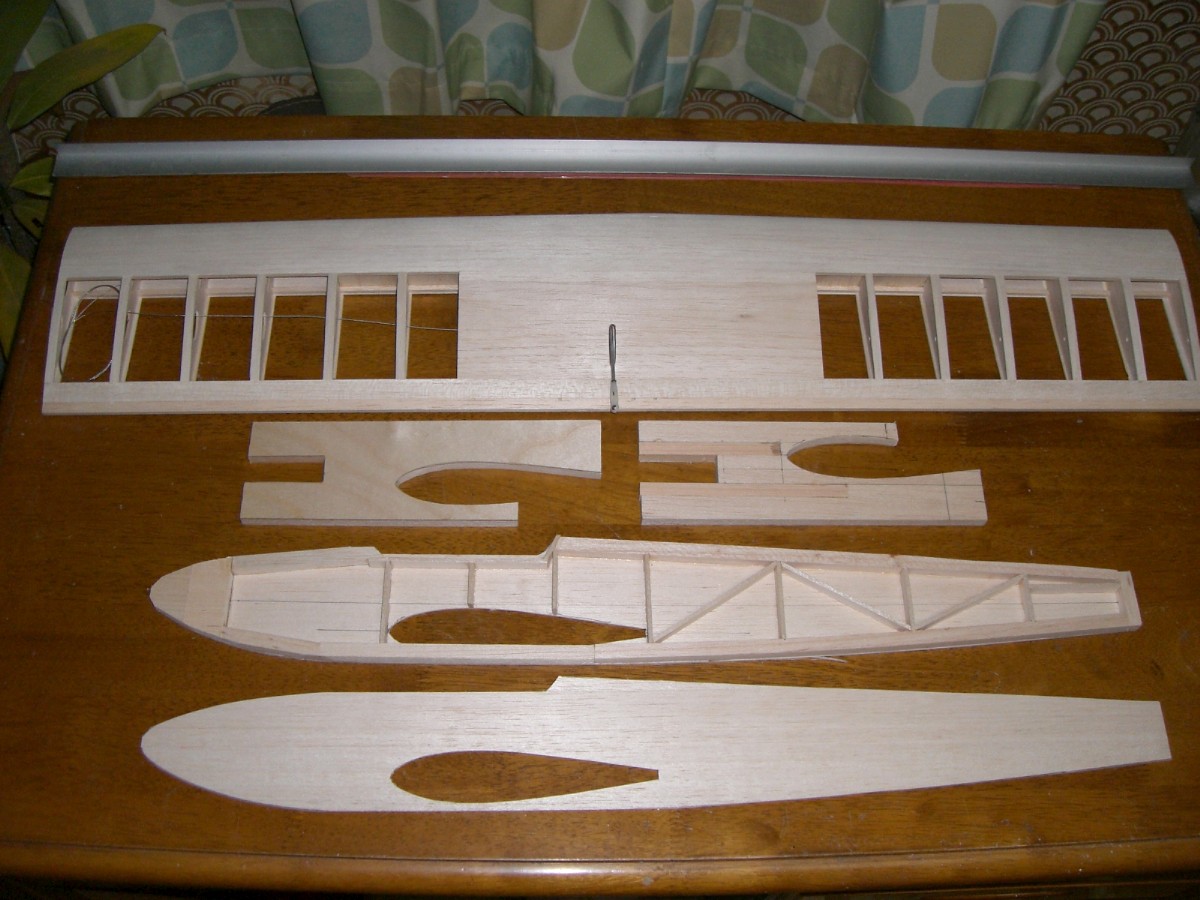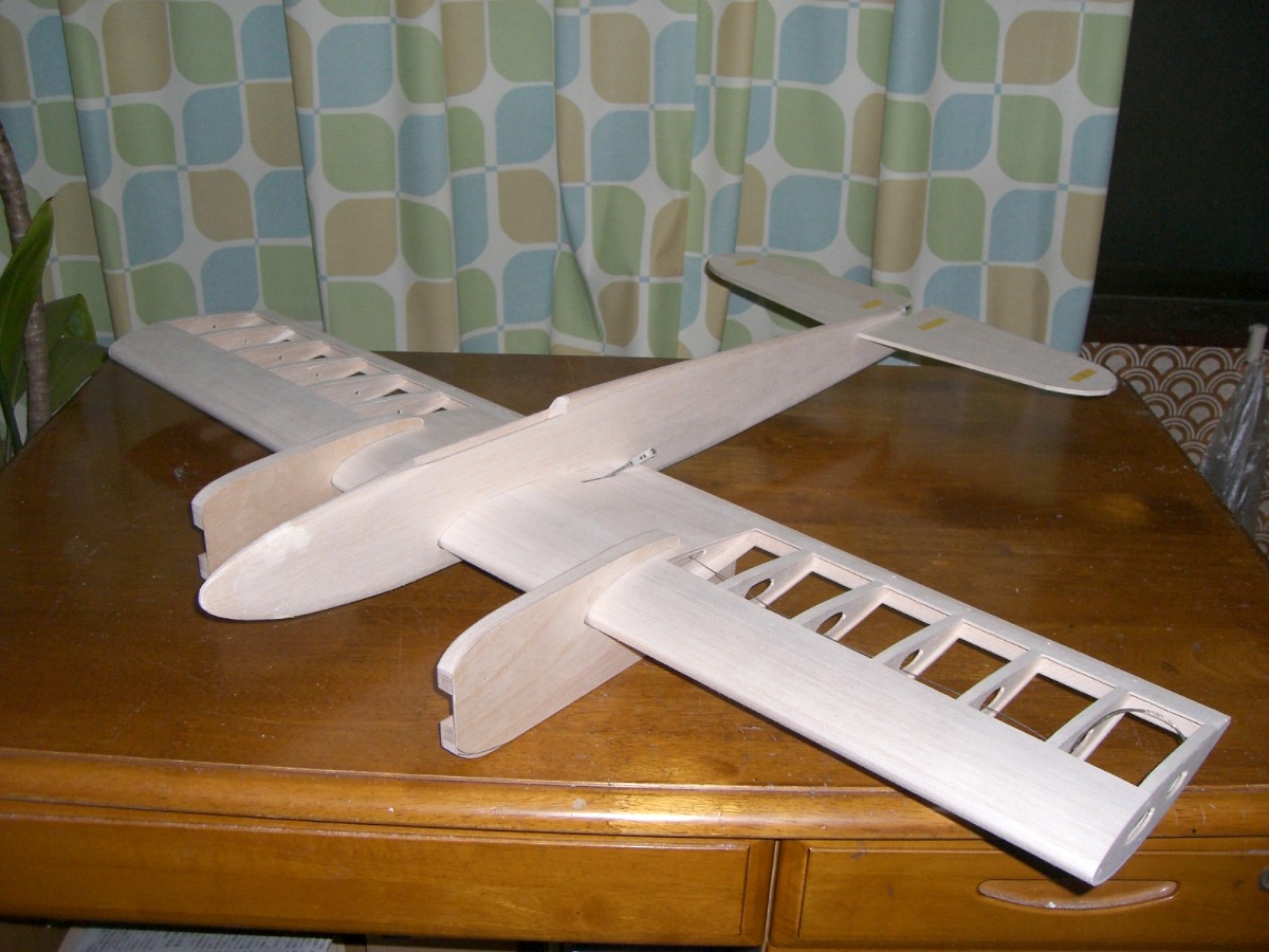 にリブ整形・・・45分。切り出したリブを長い3mmビスで止め、全体をサンディングし、スパーの溝堀など。