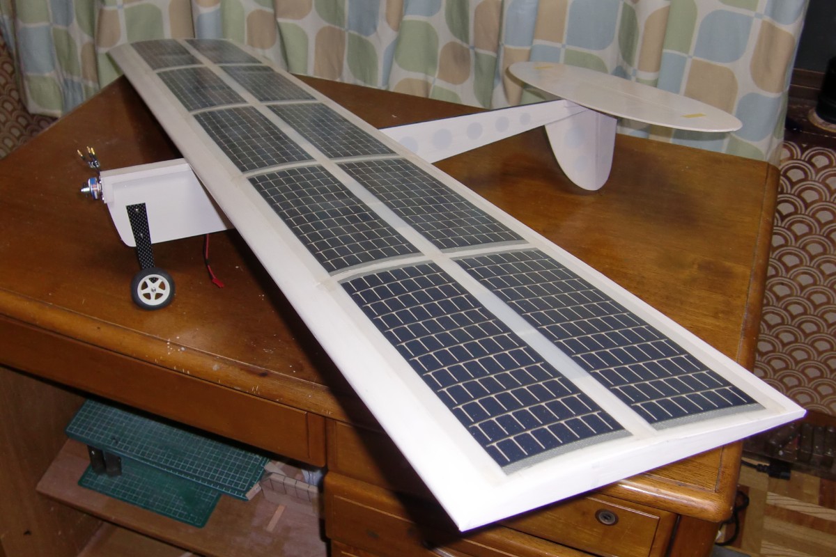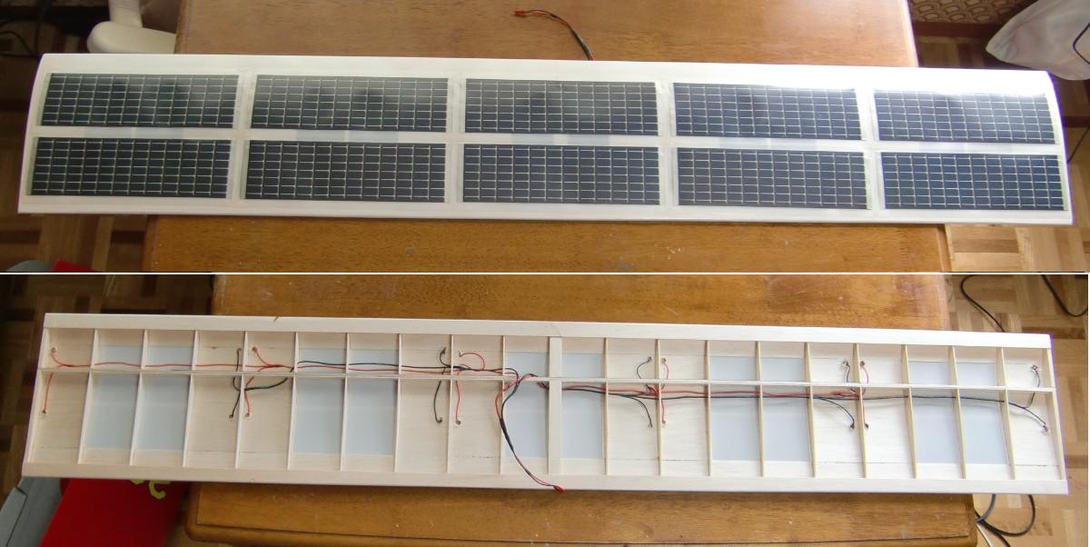 ①主翼は上面プランクをなくし、ソーラーモジュールフィルム自体で皮膜する。