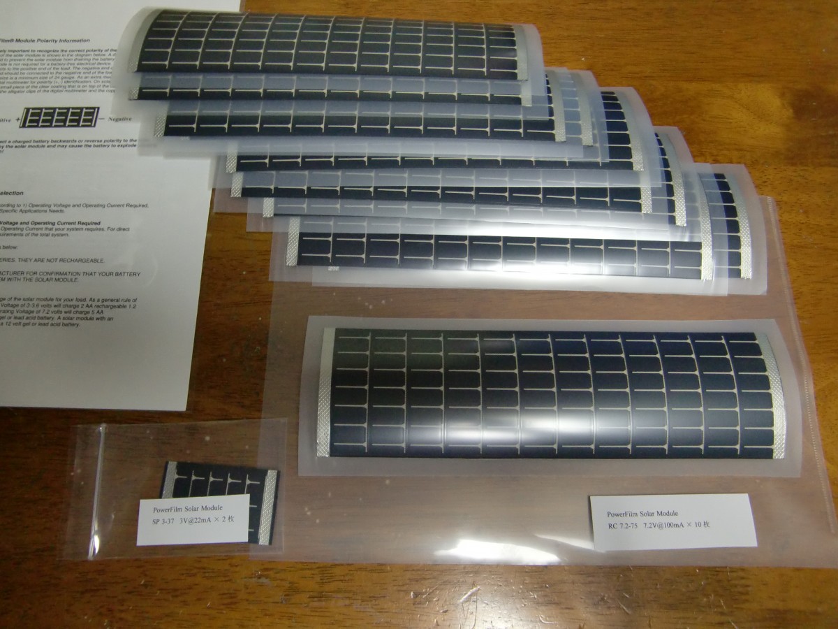 モジュールの品番は「RC7.2-75」で、ラジコン用のものとのこと。これを10枚並列に接続、主翼いっぱいの大きさで7.2V 1000mAを確保します。