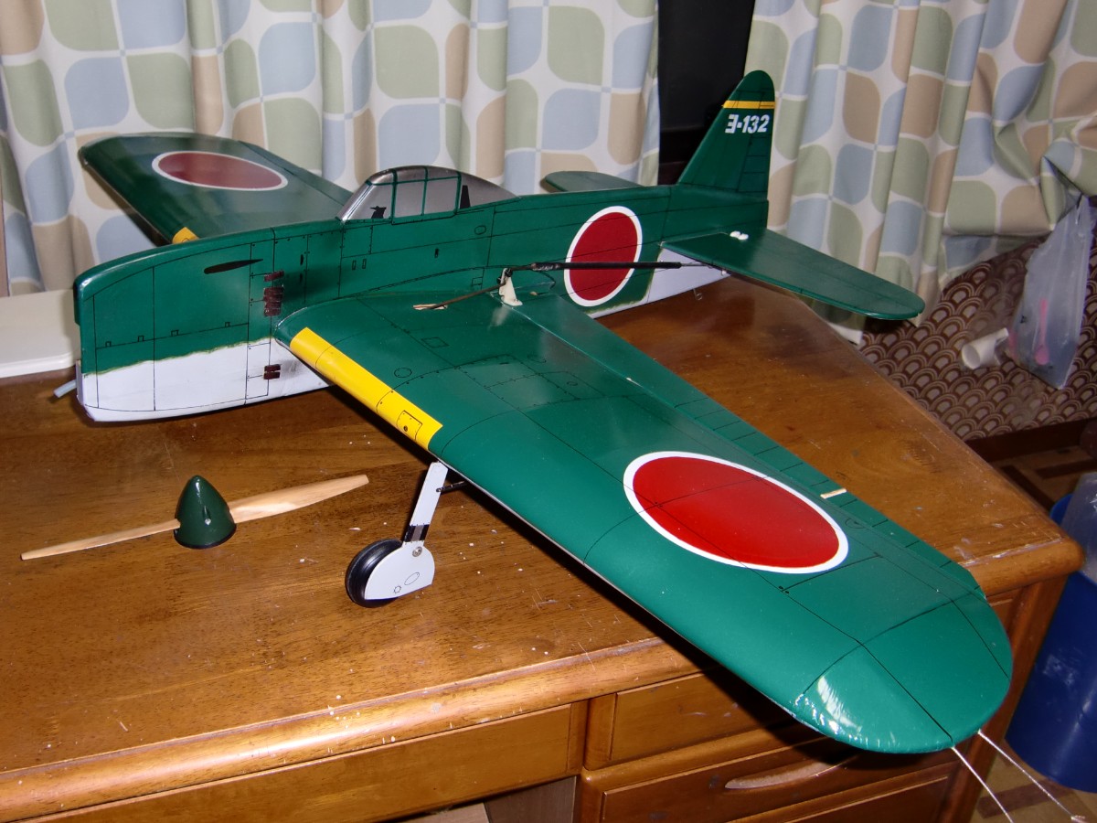 太い胴体や全体の雰囲気はかなり「紫電」のイメージに近いと思います。「紫電」のコードネームはN1K1-J「George」。ちなみに紫電改も「George」。紫電改は紫電の改良型のように思えますが、主翼以外はまったくの新設計。それでもどちらも「Geroge」ってことは、アメリカからは同じ飛行機に見えたんでしょうか?