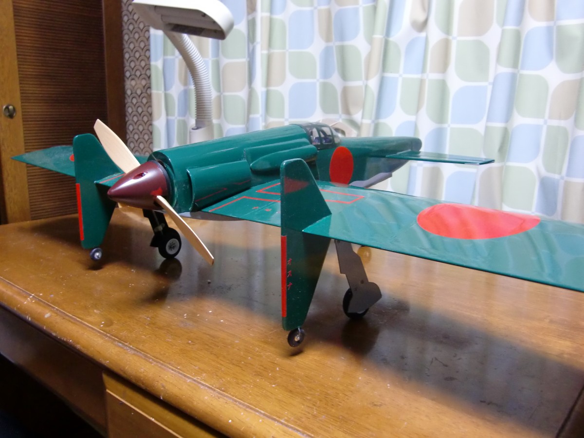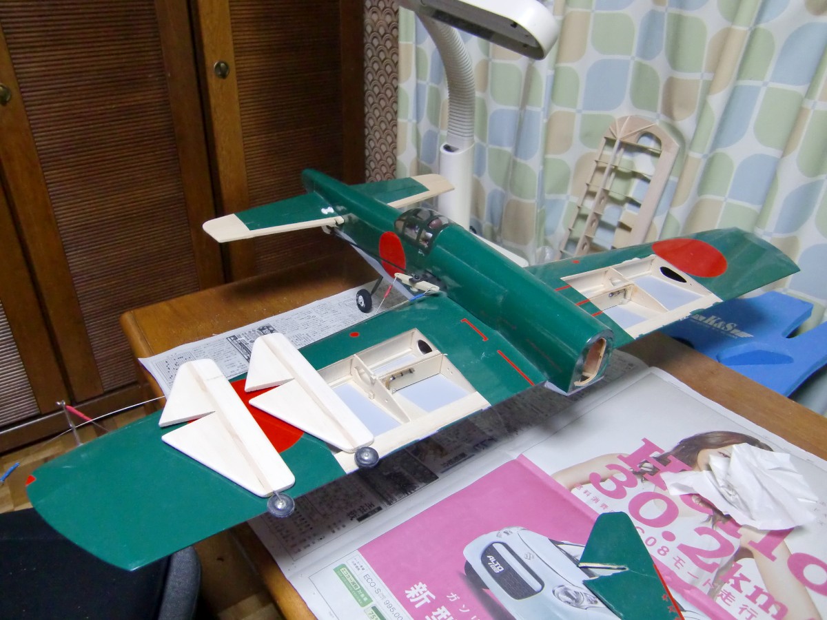 その他の改良か所は①先尾翼面積の増加・・・先尾翼機に関するアドバイスをいただき、ほとんど面積は増やさずスパンだけ少し伸ばしました。②垂直尾翼・・・ほんの少し大きくし、3mmから5mmに変更、がっしりした尾翼になりました。もちろん練習機「白菊」の尾輪?も着けました。