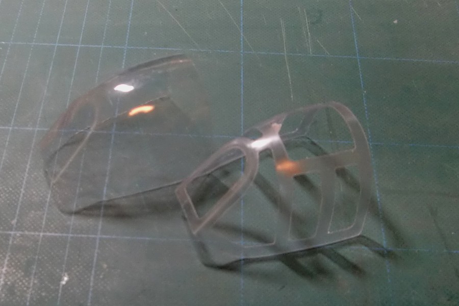 キットに入っていたキャノピーと同じもの(KMCo15クラスキャノピー)が手元にあったので、枠を作成。実機はもっと細い枠で視界もかなり良さそうですが、このサイズで細い枠を作る自信がなく、かなり太くしました。この二つを重ね合わせて機体に取り付けます。