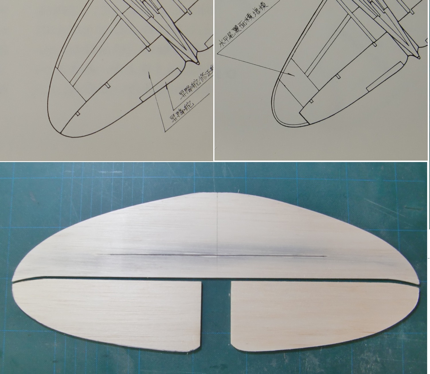 まずはいつもどおり、なぜか尾翼から?作りました。 尾翼は組み立て式にするか単板にするか迷うところですが、単板も4mmではなく3mmの良質バルサを使ってカーボンで補強。