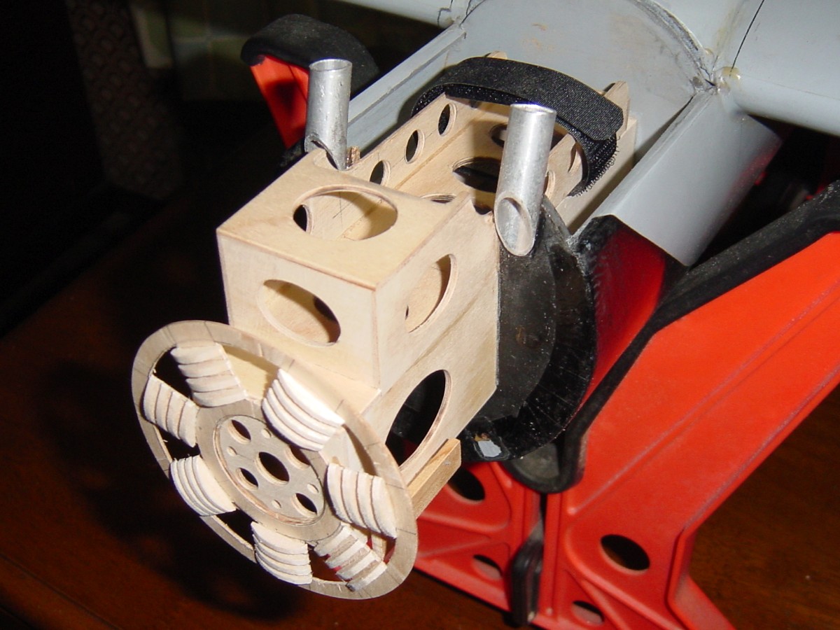 なんて能書きはそこそこに、EPならではのゲテモノに着手できるのは本当に嬉しい。思えばENYA15のフロントハウジングを90度ひねり、逆回転エンジン・・・木村さんのこの発想には脱帽するが、私の作ったKMCo震電はENYA15+逆ピッチペラ、ノーズのオモリは図面の200gの倍近くのオモリを積み、それでも宙返りや逆宙返りもできていた。