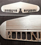 水平尾翼安定板(スタビ)はリブ組に良質な1mmバルサでプランク。昇降舵(エレベーター)は実機と同じ構造としました。